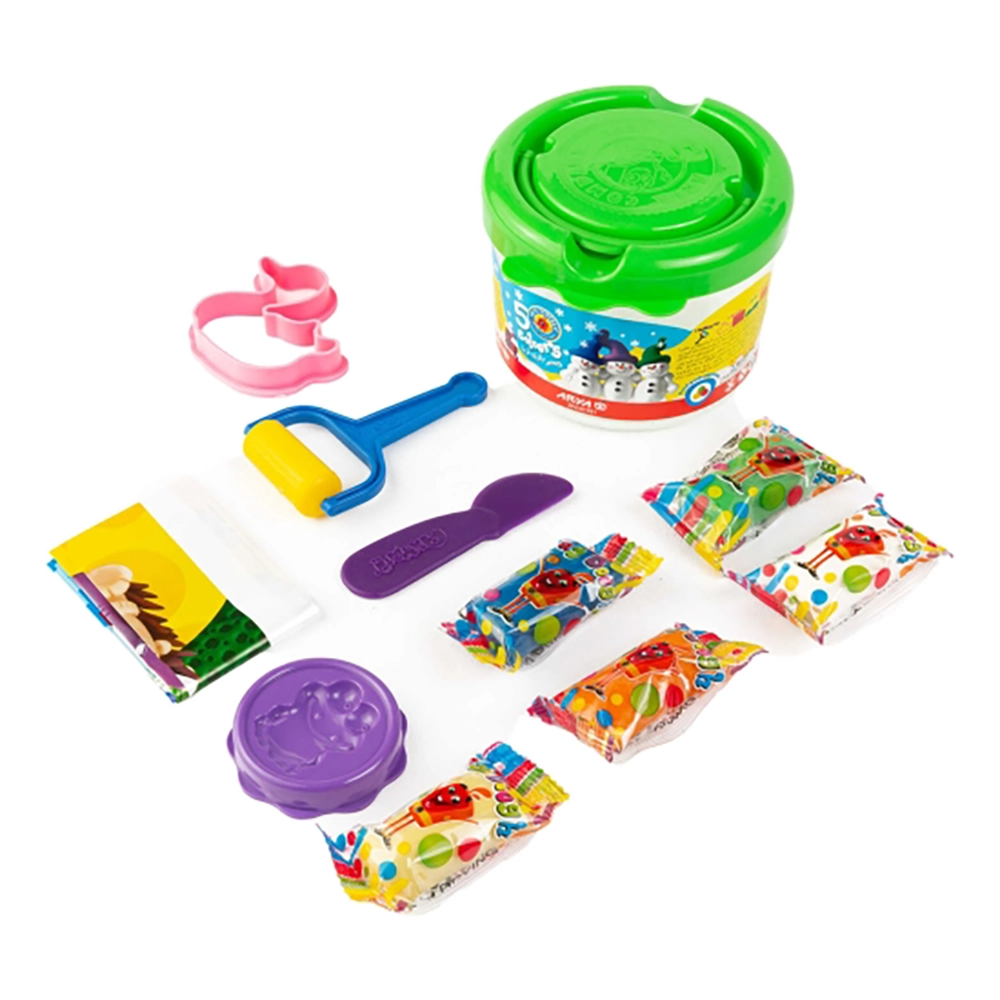 سرنگ شکل ساز ، غلتک ، 1 عدد شابلون ، 1 عدد قالب ، سفره و 5 رنگ خمیر 22 گرمی